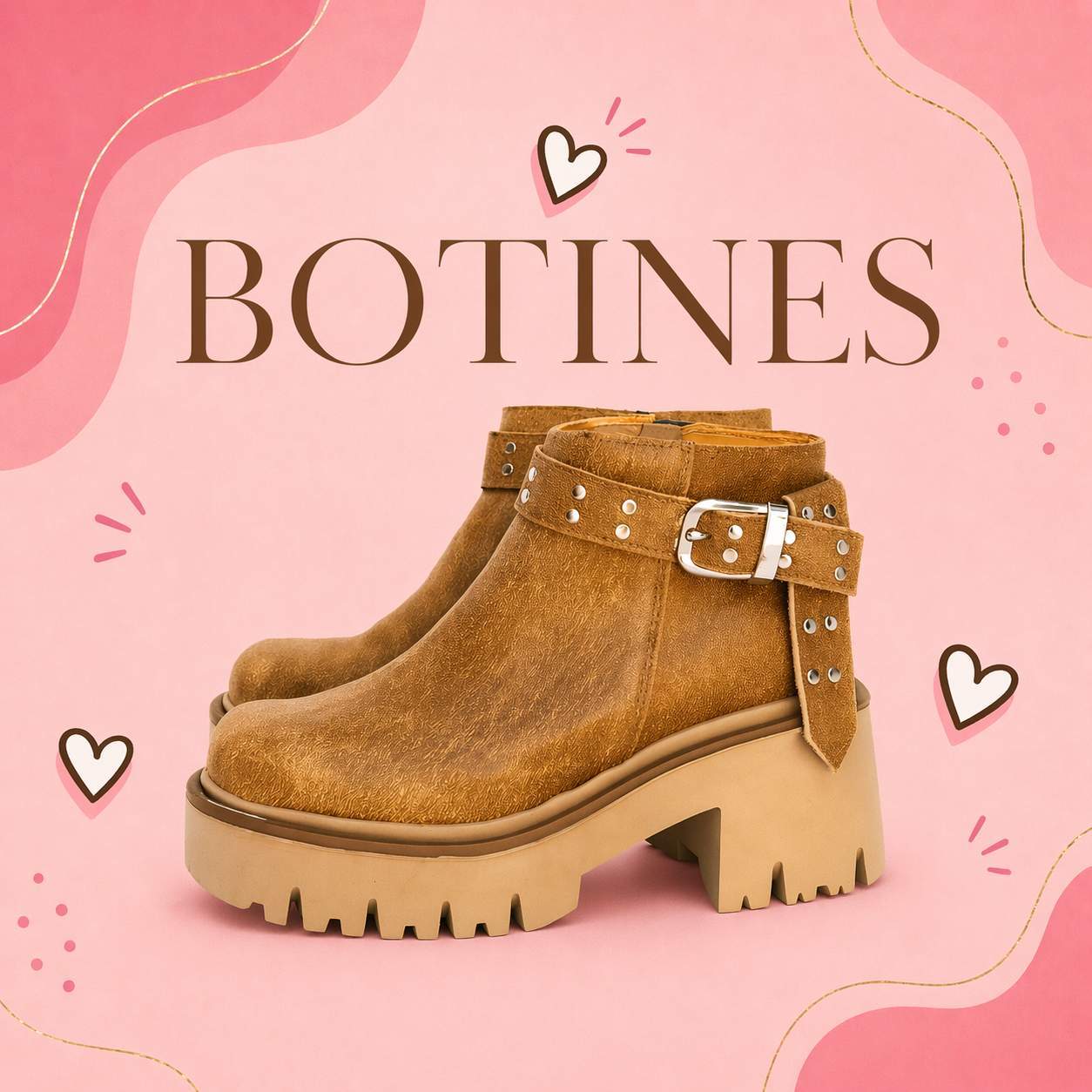 -25,93% Pedido en entrega inmediata Botines y botas Brisa Camel $59.990 $80.990 Botín de cuero natural en tono camel, elegante y con movimiento.Este botín está elaborado en cuero natural de alta calidad en un cálido tono camel que aporta versatilidad y estilo atemporal. Cuenta con correas decorativas en la caña, diseñadas para ser ligeramente holgadas Horma Pequeña Plataforma 8 Centímetros Añadir al carrito