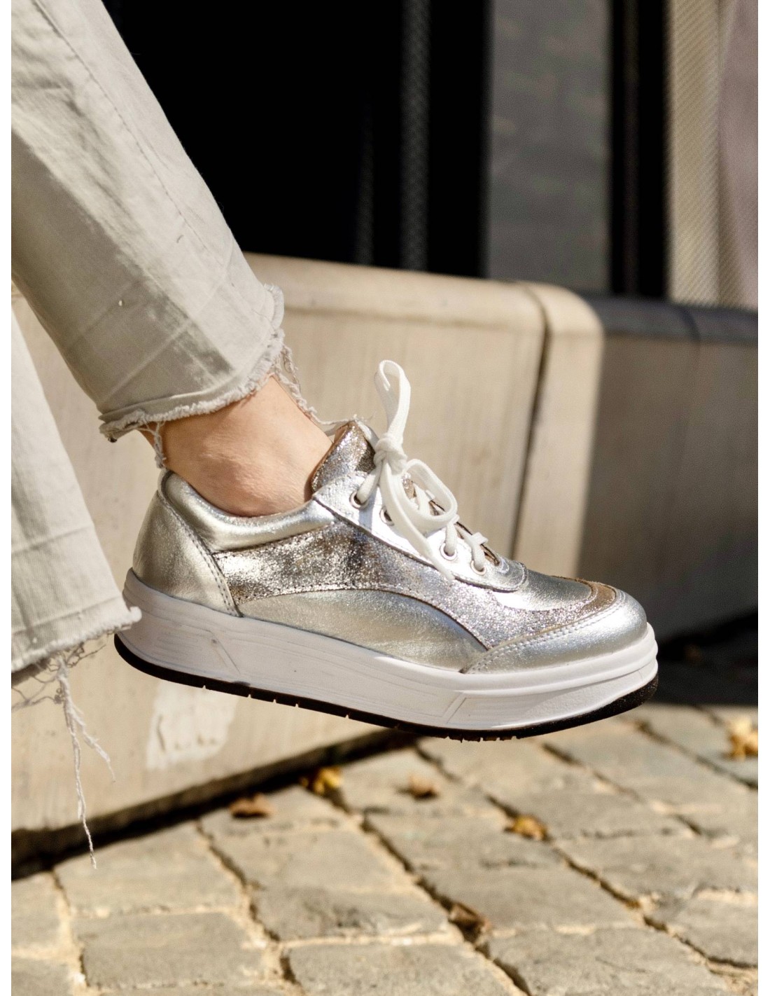 Las Colomba Glitter Plateado entregan comodidad y estilo urbano en un diseño elegante y atemporal. Su color sobrio las convierte en un básico versátil para el día y la noche.