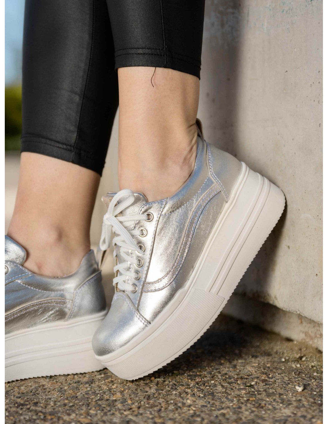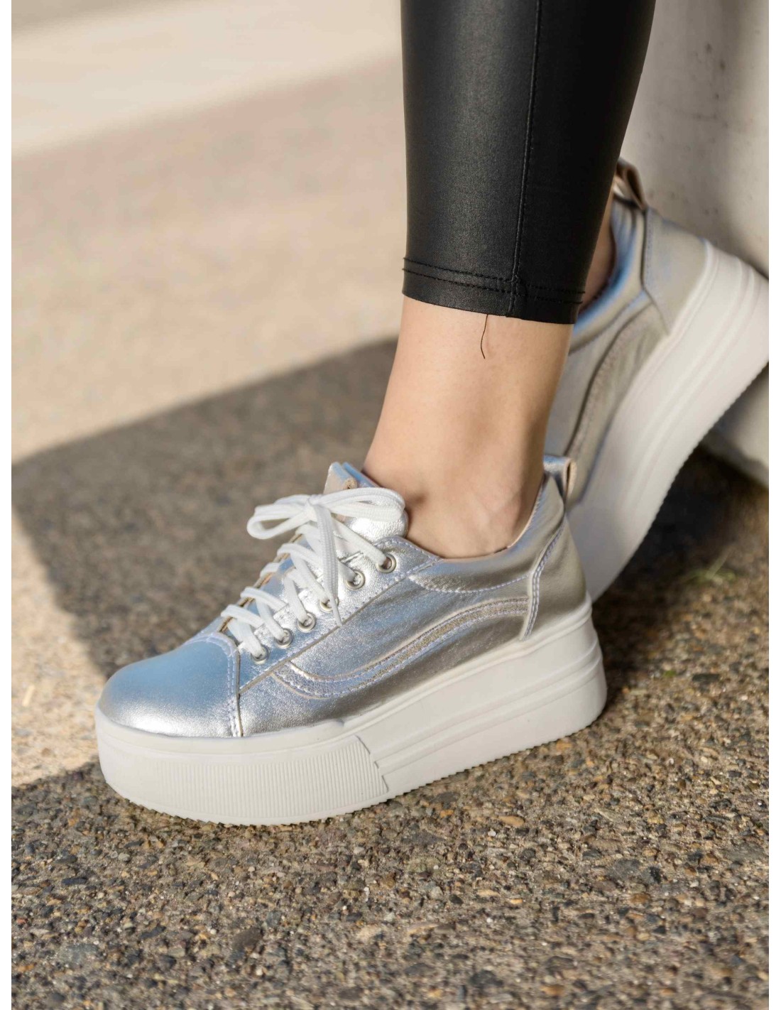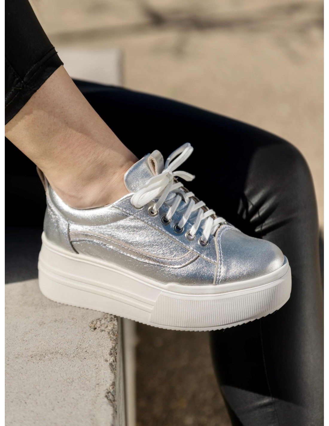 Las Leonor Plateado entregan comodidad y un acabado metálico moderno que resalta con estilo. Un calzado versátil y elegante para tu día a día.