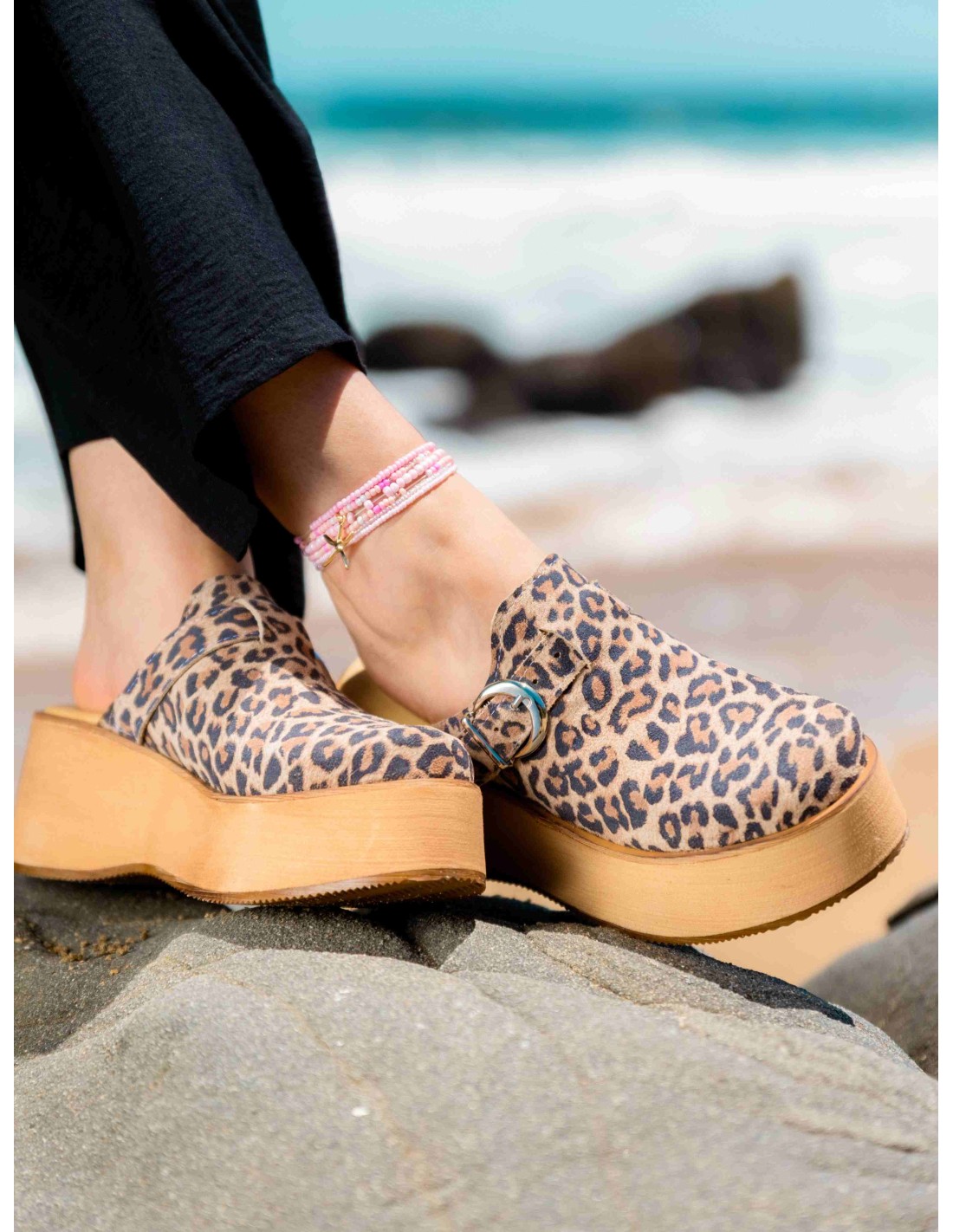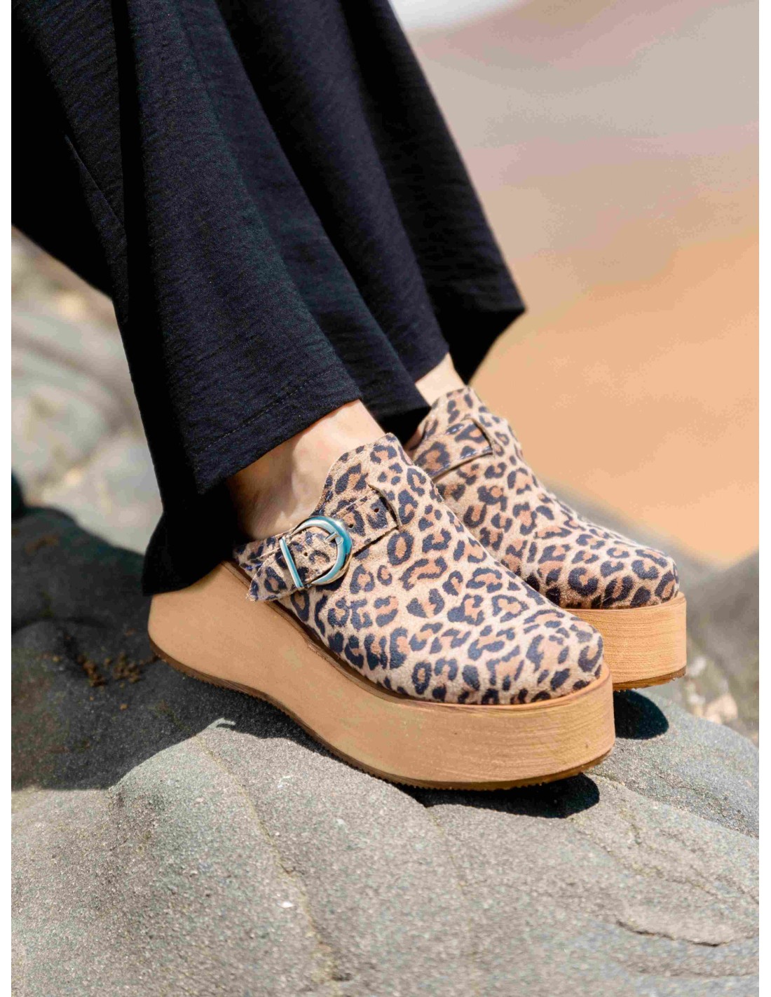Este sueco fusiona estilo y comodidad, diseñado en cuero con un atrevido estampado animal print de leopardo cafe arena. Su plataforma de EVA prensada es ultraligera, brindando un toque moderno sin añadir peso. Con una correa ajustable en el empeine, asegura un ajuste ergonómico para una pisada confiable y un look que destaca en cualquier ocasión. ¡Atrévete a marcar tendencia con este imprescindible!