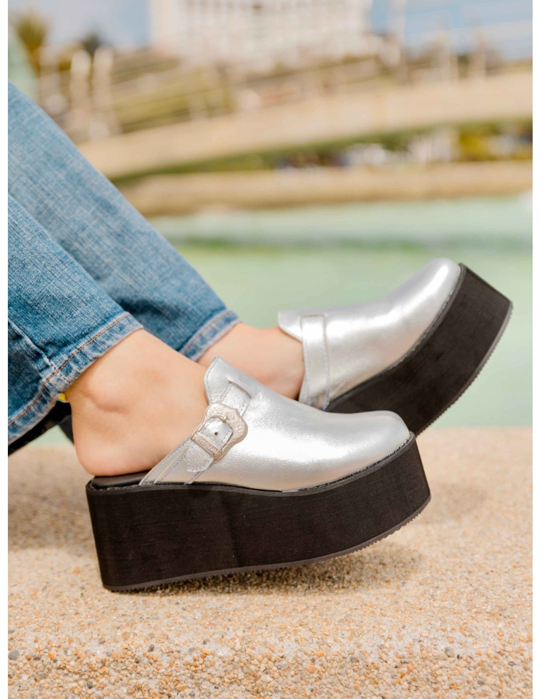 Este sueco fusiona estilo y comodidad, diseñado en cuero con un atrevido estampado plateado. Su plataforma de EVA prensada es ultraligera, brindando un toque moderno sin añadir peso. Con una correa ajustable en el empeine, asegura un ajuste ergonómico para una pisada confiable y un look que destaca en cualquier ocasión. ¡Atrévete a marcar tendencia con este imprescindible!