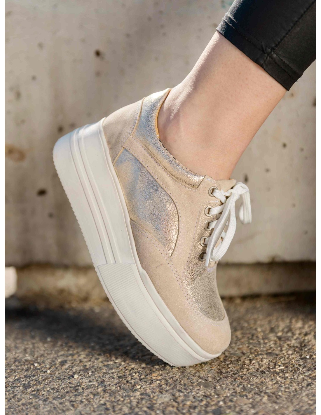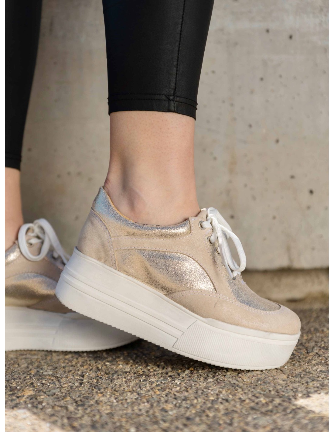 Las Yorka Arena Gold combinan comodidad con un acabado dorado sutil en tono arena. Un modelo elegante y versátil que realza cualquier look.
