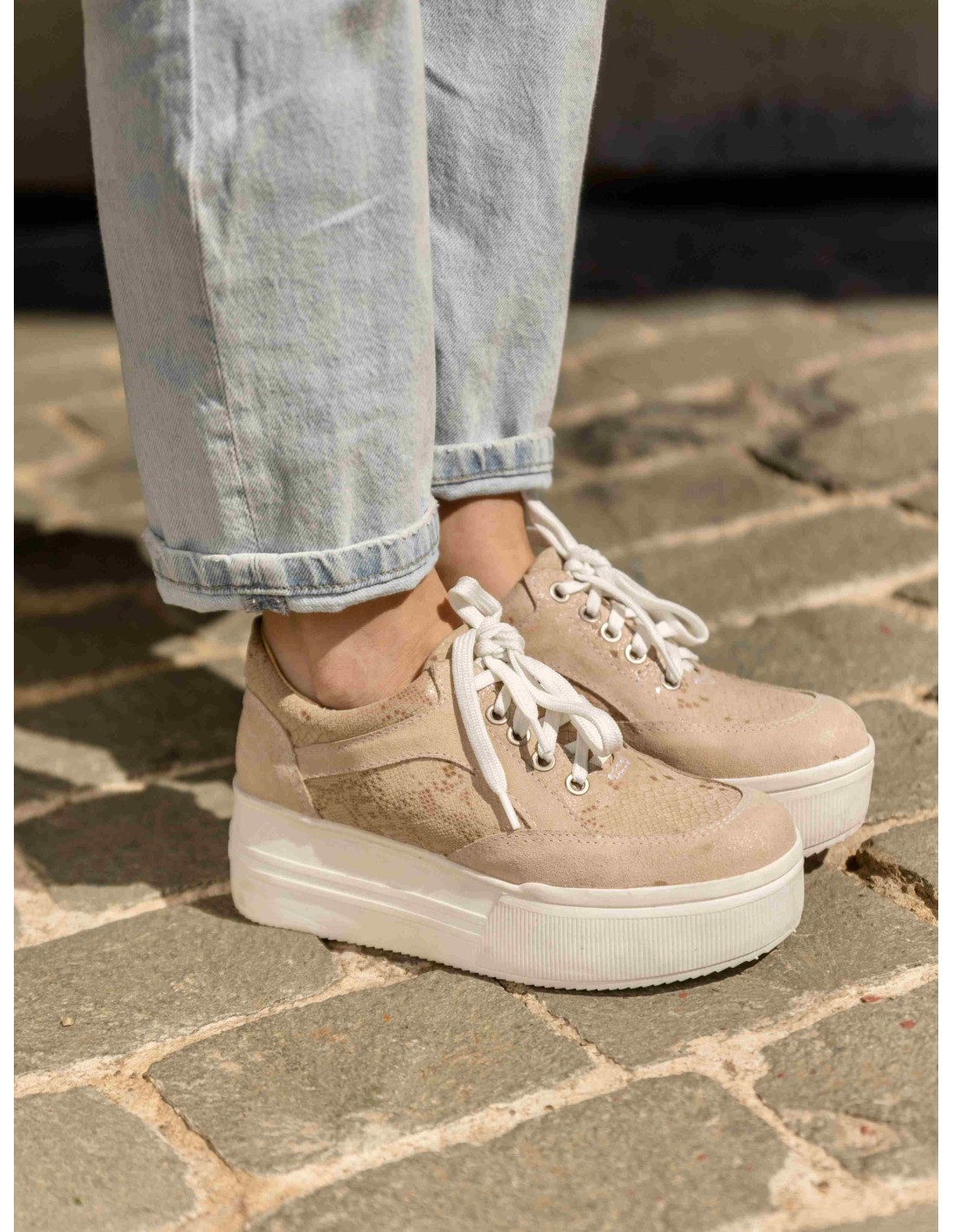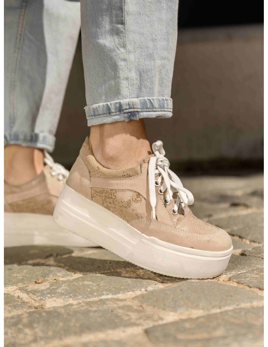 Las Yorka Arena Reptil entregan comodidad y un acabado reptil en tonos neutros. Ideales para quienes buscan un calzado llamativo pero elegante.